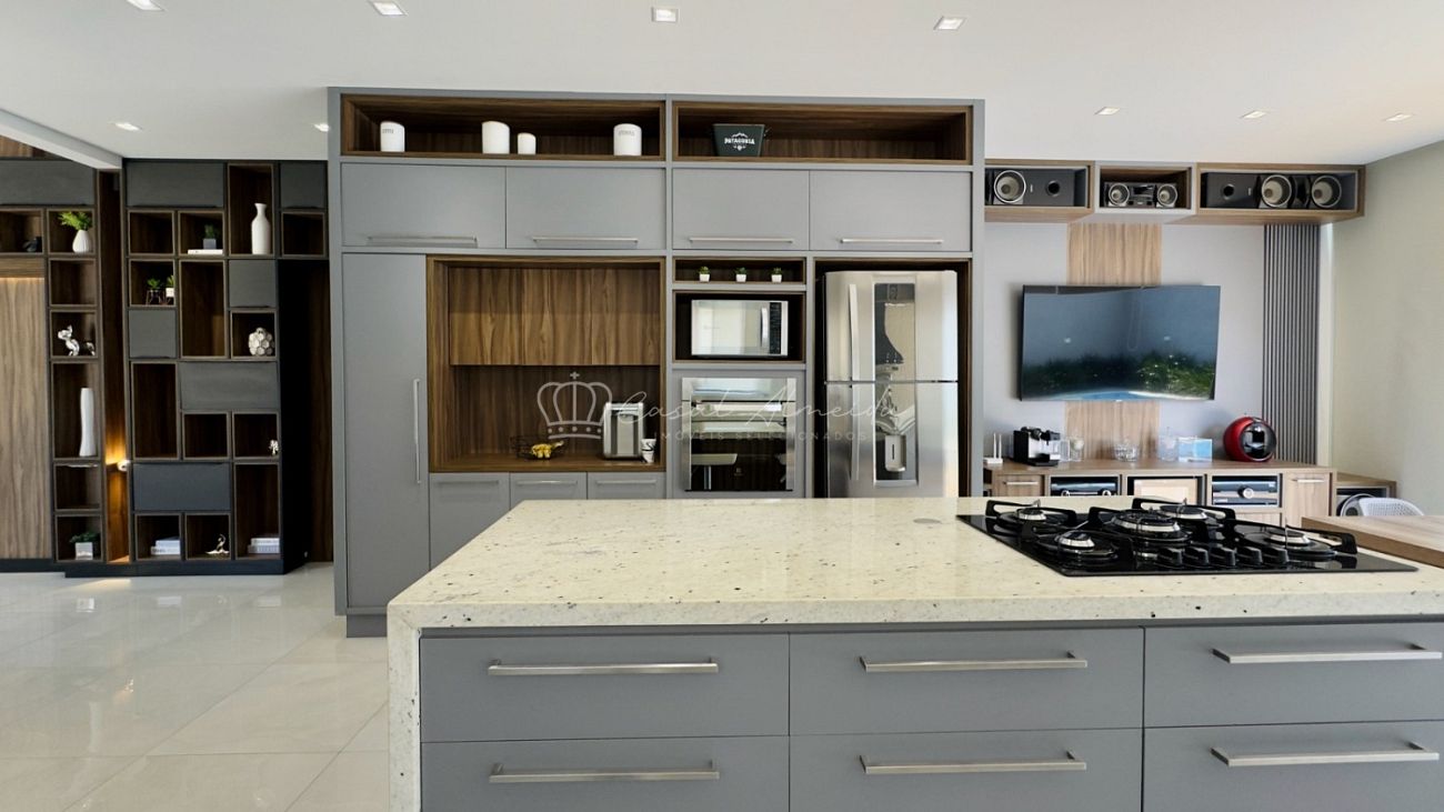 • Cozinha gourmet integrada, equipada com churrasqueira