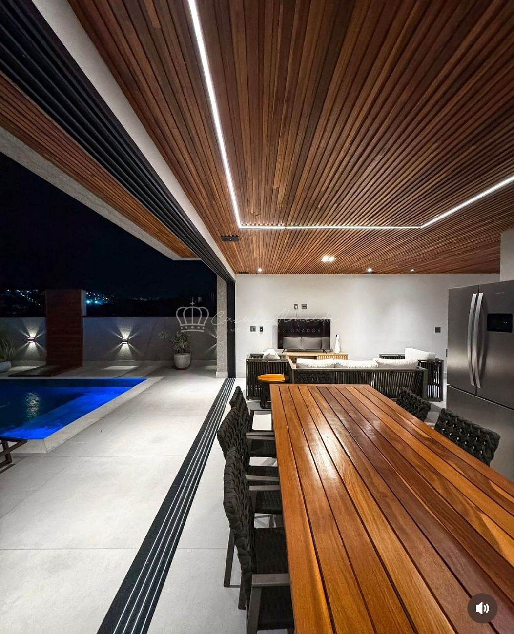 • Sala com pé-direito duplo e cortinas automatizadas