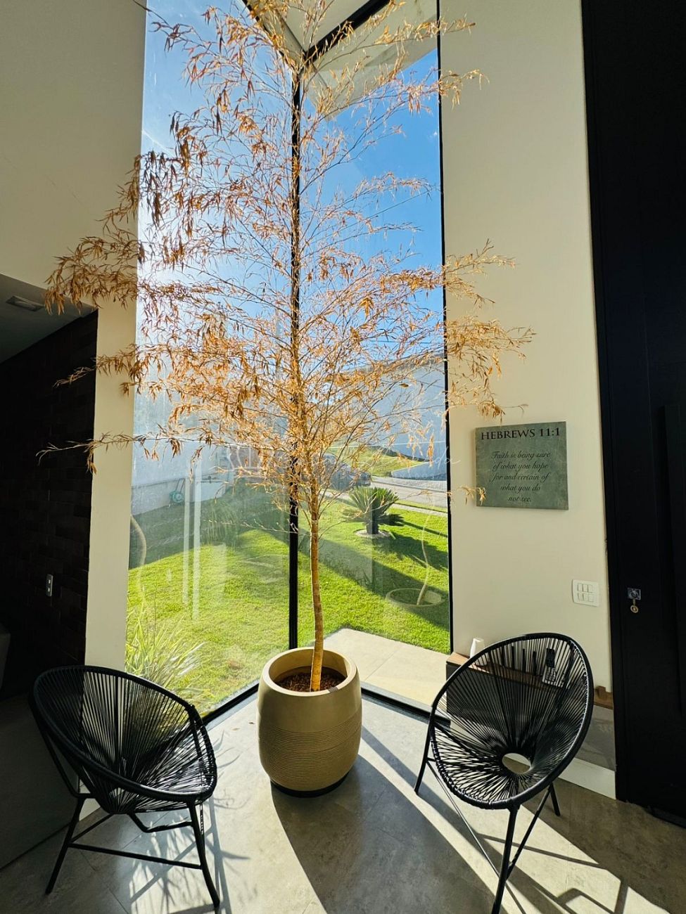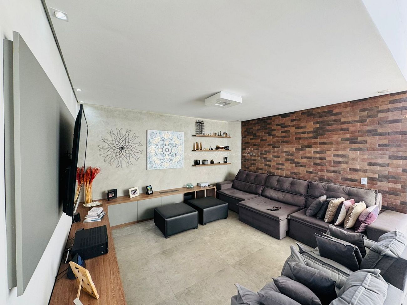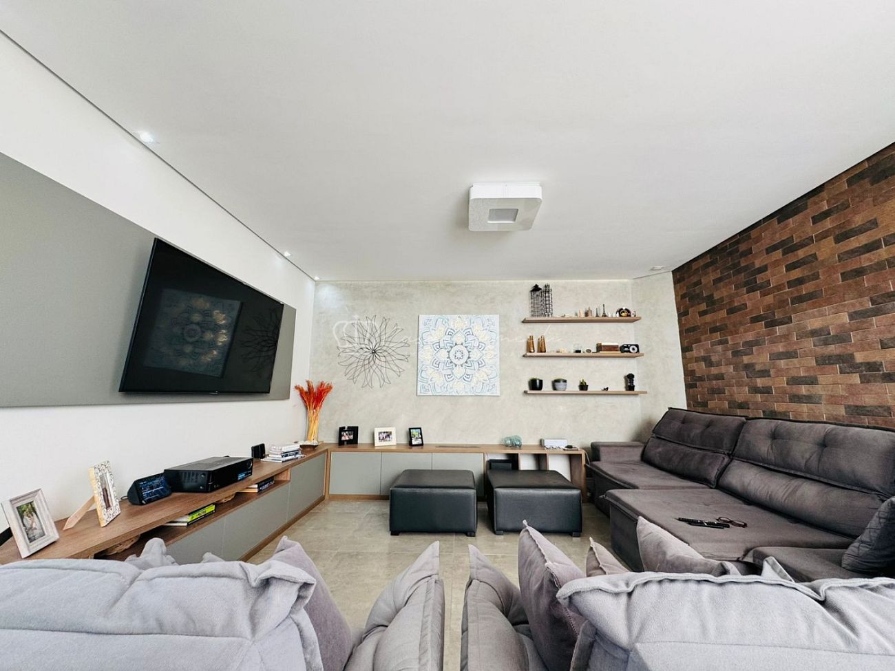 • Sala ampla com 2 ambientes e pé-direito duplo, proporcionando elegância e luminosidade