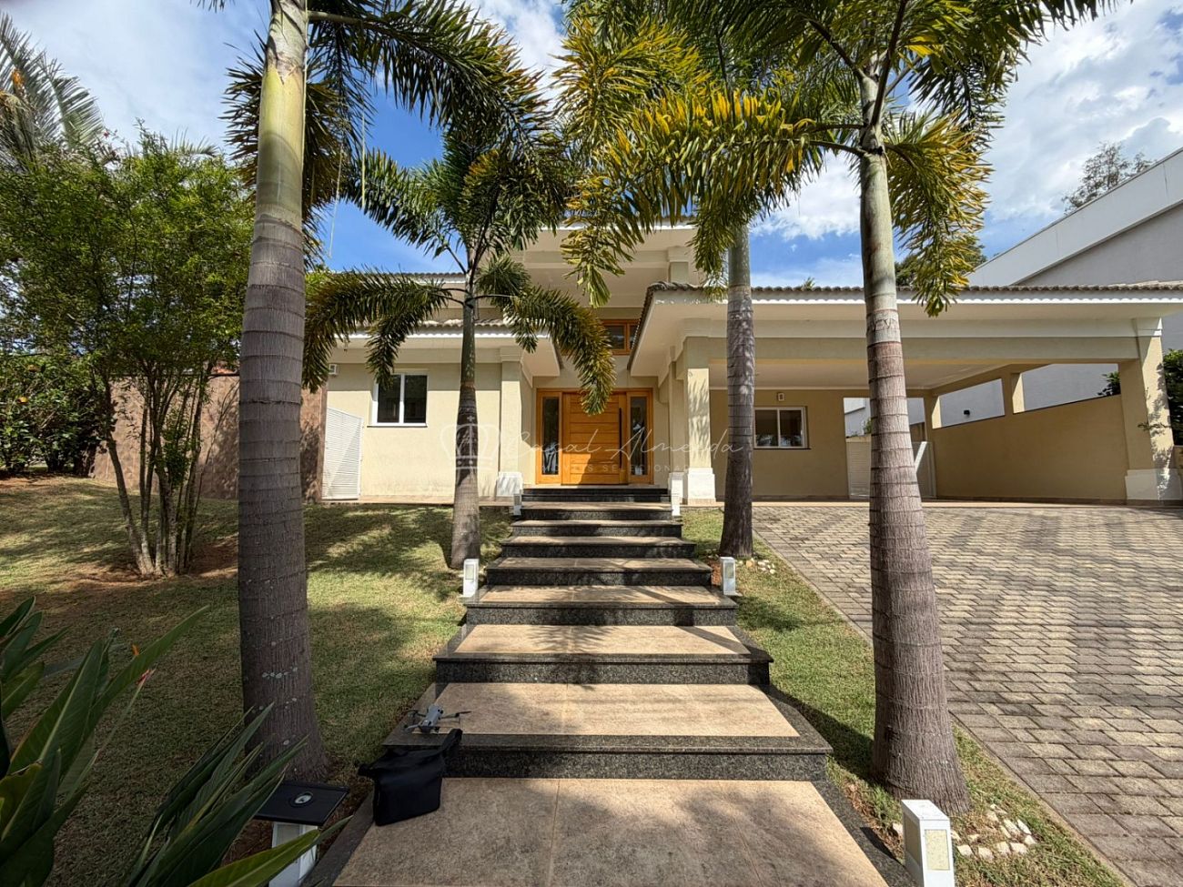 O imóvel ainda dispõe de aquecimento solar, ar-condicionado na sala e dormitórios, pomar, depósito e garagem coberta para 2 veículos, além de vagas adicionais.